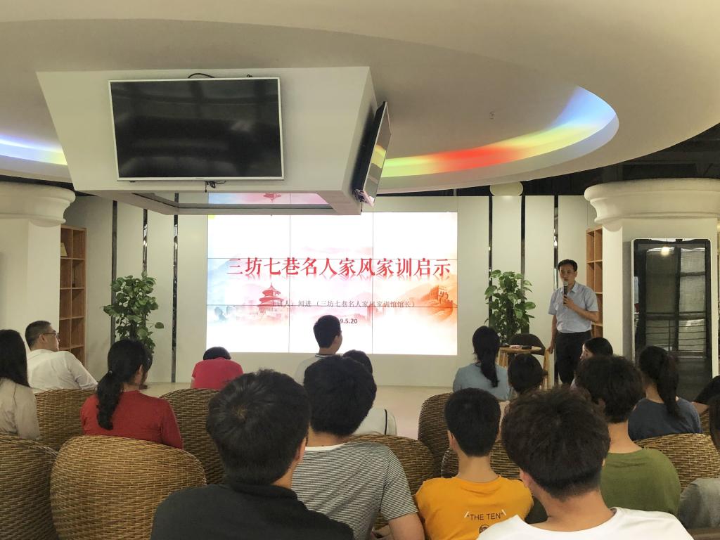 本次讲座邀请了福州三坊七巷家风家训馆馆长闻进主讲。闻馆长以与三坊七巷相关的十大历史故事为引,为大家介绍了三坊七巷的历史文化、坊巷特点及近现代名人故事。随后以三坊七巷的关键人物林则徐先生为中心展开,讲述了林家“立志报国”、“爱国爱家”的坚定家族信念,同时警醒当代人注重家庭、家教、家风建设,延续三坊七巷“开风气之先,谋天下永福”的历史精神文化。闻馆长还鼓励大家从历史、摄影、美食等多个角度思考,更全面地游览三坊七巷,参观名人故居。