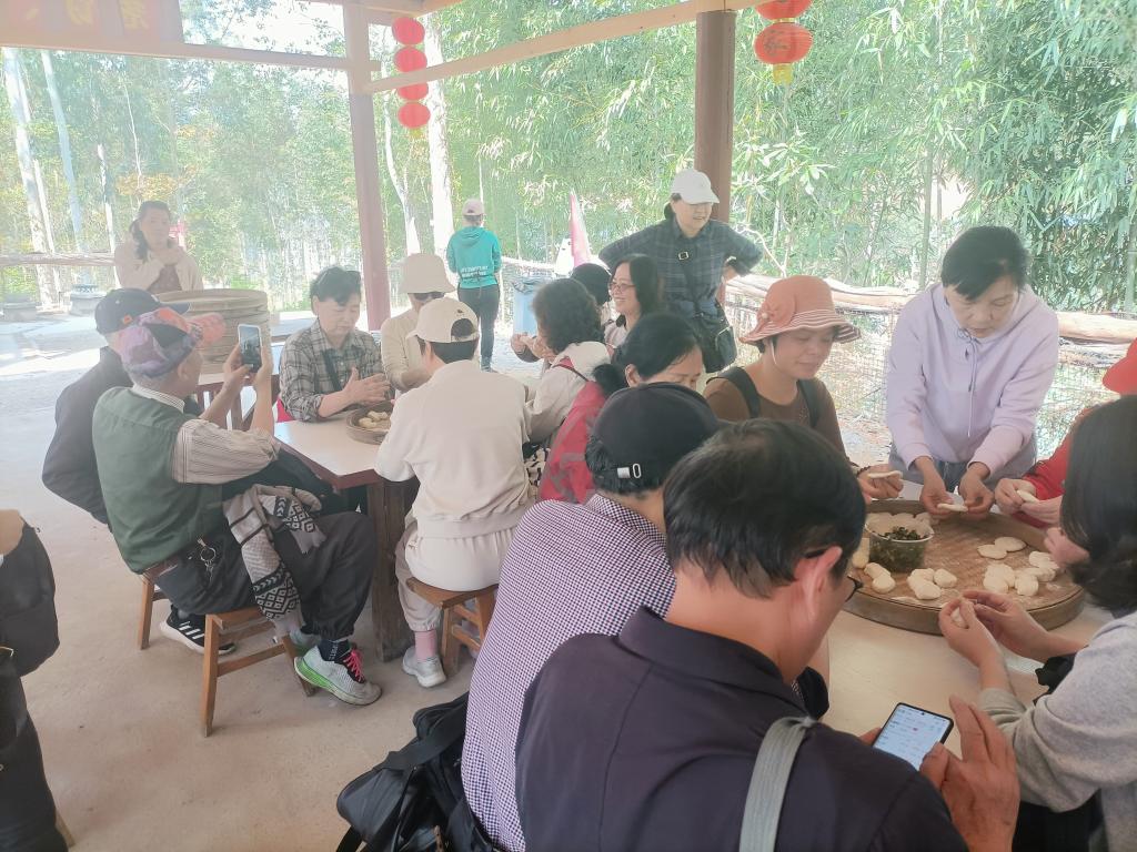 在幸福庄园,漫步在山水成荫的美好自然环境中,大家分成三组,先后参观了新时代法治教育实践基地,参加了水上高尔夫、制作葱饼、射箭、打牌、茶叙等活动,清新的空气与明媚的阳光让大家心情愉悦,现场满是欢笑声与喝彩声。在法治教育实践基地,大家学习习近平法治思想,增强了法治意识和防范诈骗、保护自我的能力。在水上高尔夫区域,他们身姿矫健,挥动球杆,白球掠过水面,激起层层涟漪。手工制作葱饼的环节更是充满乐趣,老同志们围坐一起,在庄园师傅指导下揉面团、包馅料、擀面皮,一道道工序有序进行,当喷香的葱饼新鲜出炉,大家品尝着自己的劳动成果,脸上洋溢着幸福与开心。射箭场上,老同志们同样不甘落后,他们搭箭、拉弓,眼神专注,尽显沉稳自信,即便是初次尝试的,在工作人员耐心指导下,也能射中目标,体验到射箭的独特魅力。在棋牌室,老干部或打牌,或打台球,或泡茶交流,其乐融融。