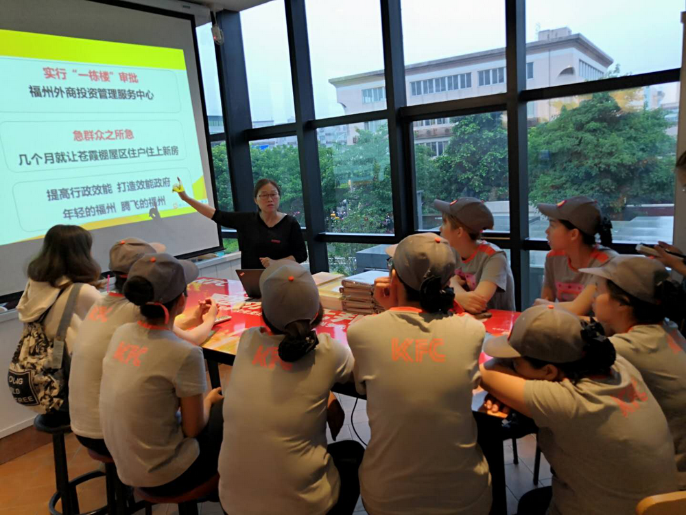为全面落实立德树人根本任务和“三全育人”工作要求,5月15日,公共管理学院到百胜(福州)餐饮有限公司旗下肯德基(福州大学城店)为企业学员开展“习近平新时代中国特色社会主义思想”宣讲活动。