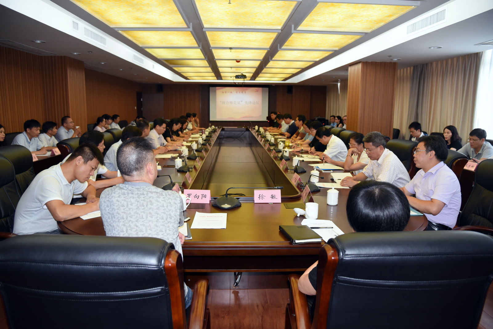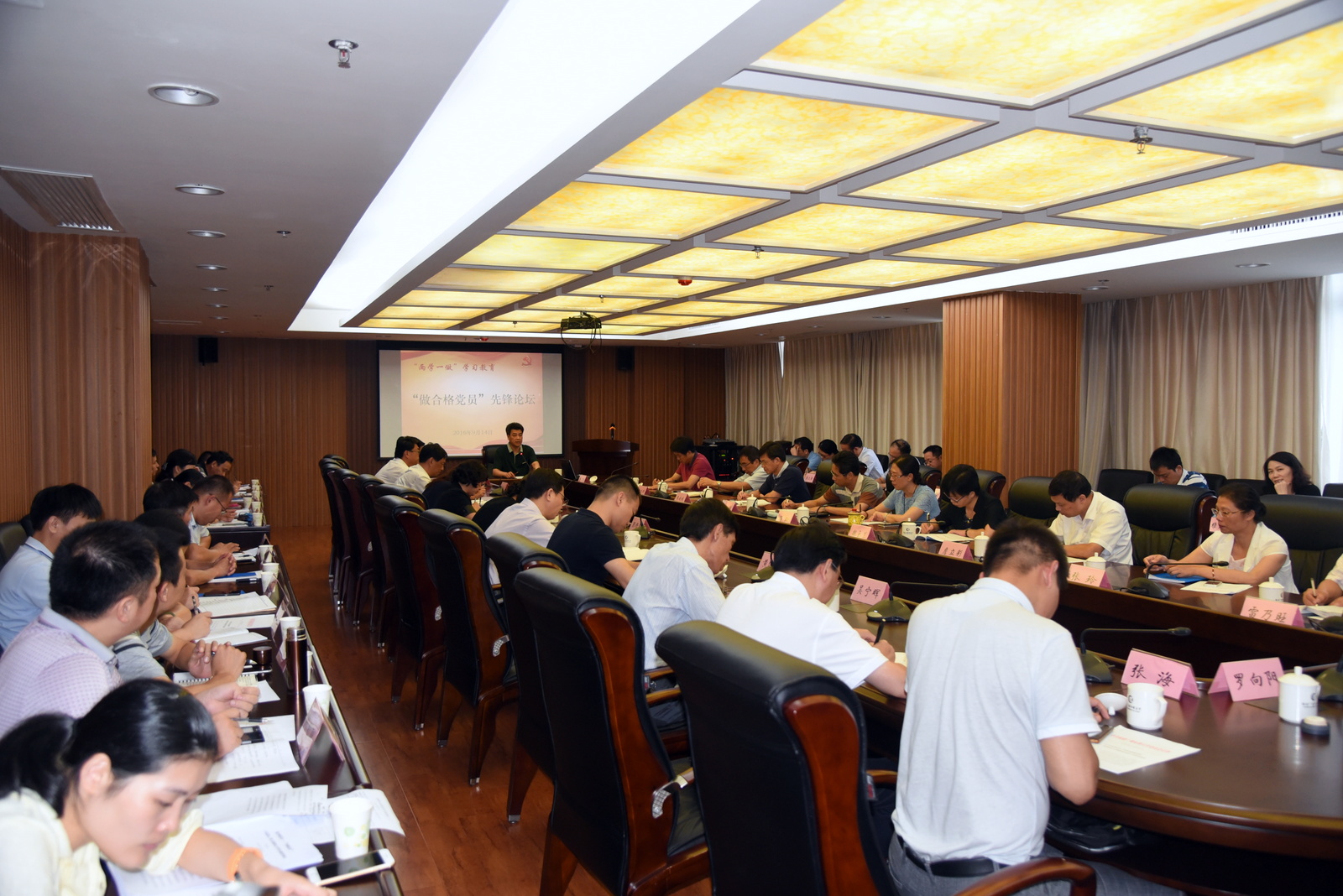 9月14日下午,学校召开今年第七次党委中心组学习(扩大)会议,以“做合格党员--先锋论坛” 形式开展交流学习,党委书记马国防主持会议,校党委委员陈兴炎、吴国荣、陈展虹、沈光辉、王幼新出席会议,全校副处级以上干部参加会议。