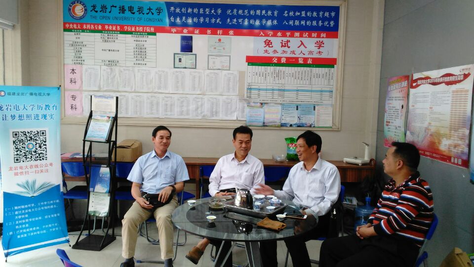 王幼新先后来到龙岩电大分校、上杭和连城电大工作站,听取当地电大负责人关于队伍建设、退役士兵职业教育、招生办学、创新发展等方面的情况介绍,了解基层电大员工对教学教务、考试管理等方面的意见和建议。在龙岩分校,校长邓思平、书记林伟能汇报了近期退役士兵招生进展情况,介绍了近年来龙岩电大在争取党政支持、运用激励机制、加强队伍建设、深耕发展项目等方面的探索和成效,提出了进一步加强系统建设、维护基层电大办学利益的愿望和建议。在上杭电大,站长蓝海重点介绍了“一村一名大学生”项目实施情况,以及上杭电大通过加强对外宣传展示电大形象、通过沟通协调争取党政支持的实践做法,提出了实现退役士兵手机终端考试的思考和建议。在连城电大,王幼新参观了电大教学区、日常招生办公的场地和设施,听取了站长黄海、副站长黄炎升关于校舍改造、实施“一村一名大学生”培养计划、开展退役士兵职业教育等方面的情况汇报,以及建设和完善招生报名、教学教务、作业考试等综合服务平台的建议。同时,王幼新与连城县教育局局长李正鸿进行交流座谈,推动解决了增加电大1名教学人员编制的问题。
