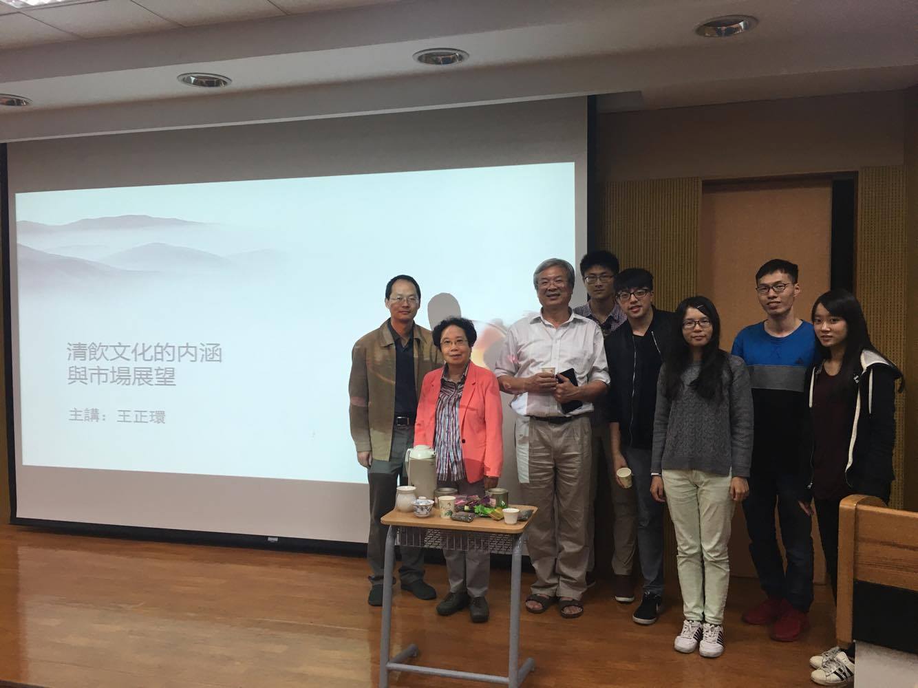 应台湾大学农业经济学系邀请,11月25日,我校台湾大学访问学者、教学管理中心财经与管理系副教授王正环在台湾大学农经大讲堂作了题为“清饮文化的内涵与市场展望”的专题演讲,台湾大学农业经济学系教师和研究生约70人听取了讲座。