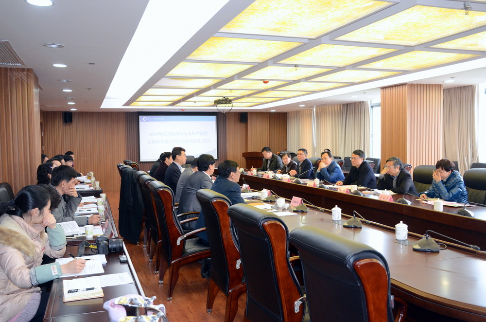 上午,学校在桂山校区召开迎检汇报会。党委书记马国防代表校党委向检查组汇报了2016年度学校深化“五抓五看”要求,推进全面从严治党主体责任的落实情况。他说,2016年校党委认真学习贯彻党的十八大和十八届三中、四中、五中、六中全会精神,认真学习贯彻习近平总书记系列重要讲话精神,认真学习贯彻福建省第十次党代会精神,按照全面从严治党主体责任“五抓五看”要求,不断增强领导班子贯彻落实党的路线、方针、政策和讲政治、讲规矩的坚定性和自觉性,推动有特色的高水平开放大学建设迈上新台阶。他从以“两学一做”为抓手,切实抓好思想教育;以强化体制机制建设为根本,切实抓好制度建设;以压实责任为关键,切实抓好“一把手”工作;以严明纪律和规矩为首要,切实抓好查处;以坚持问题导向为重点,切实抓部署、检查、落实;以鲜明态度和切实举措,支持纪委开展工作;以突出事业发展为主线,抓好党建促发展七个方面汇报了我校落实全面从严治党主体责任的有关情况,并说明了工作中存在的问题和不足。