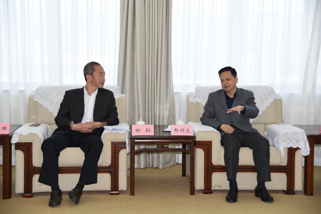 4月13日上午,省委政法委政治部林征处长一行到我校进行工作交流。校长陈兴炎在桂山校区热情会见了林征一行。林征表示,他们此行是代表省委政法委政治部领导来反馈前期我校提出的政法干警专业素养提升工程项目情况,并向陈兴炎校长详细介绍了省委政法委召集政法系统各部门就该项目事宜商谈的情况。陈兴炎校长就省委政法委对该项目的重视表示了感谢,并向客人介绍了电大的办学特色,要求有关部门进一步与省委政法委相关部门对接,积极促成相关合作项目落地实施。
