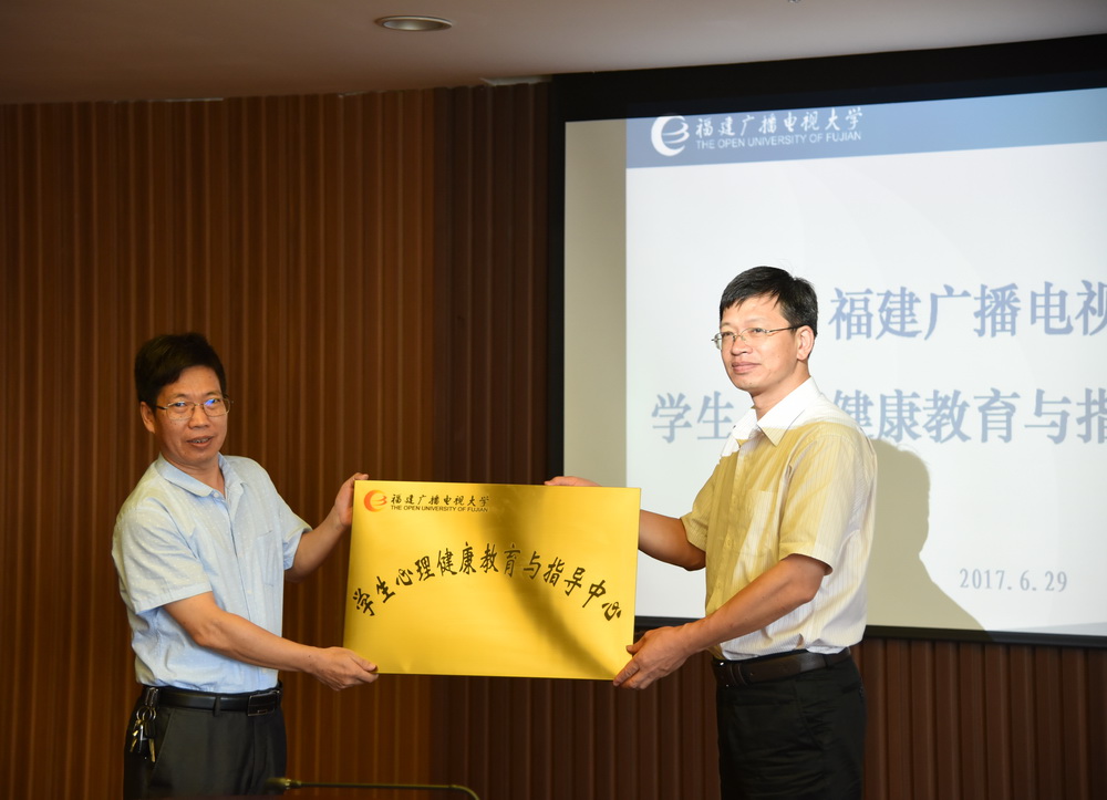党委副书记马成斌(右)为学生心理健康与指导中心授牌
