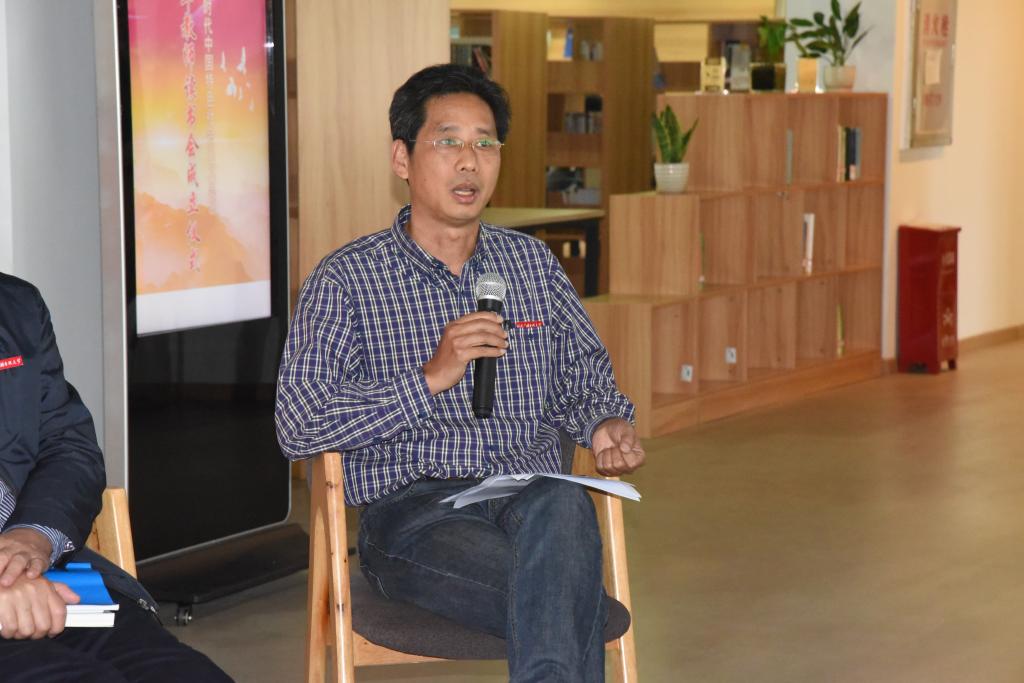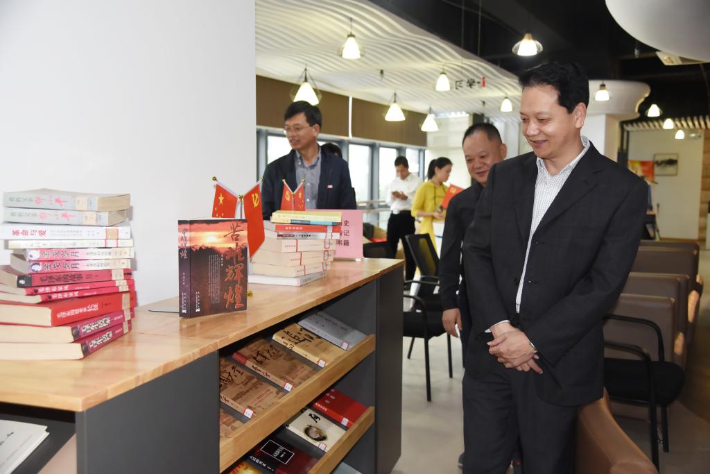 校党委书记陈兴炎、党委副书记马成斌出席读书会成立仪式,为读书会揭牌,并向读书会成员赠送党的十九大报告单行本和《习近平的七年知青岁月》读本。