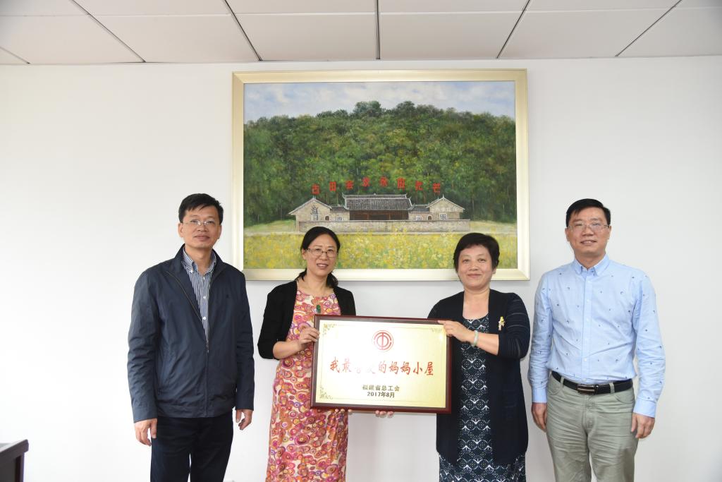 11月10日上午,省总工会女工部部长张红璇、省教科文卫体工会工委江发林主任一行到我校,为我校全省“我最喜爱的妈妈小屋”授牌。