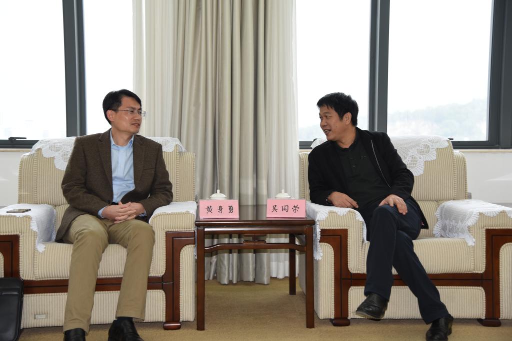 校长吴国荣(右)与福建商学院纪委书记黄身勇(左)