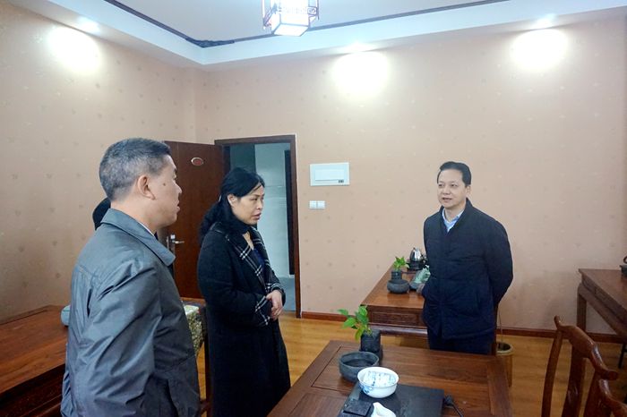 陈兴炎还实地查看了生态菜园、新建机房、茶艺室和茶叶实验室等场所。