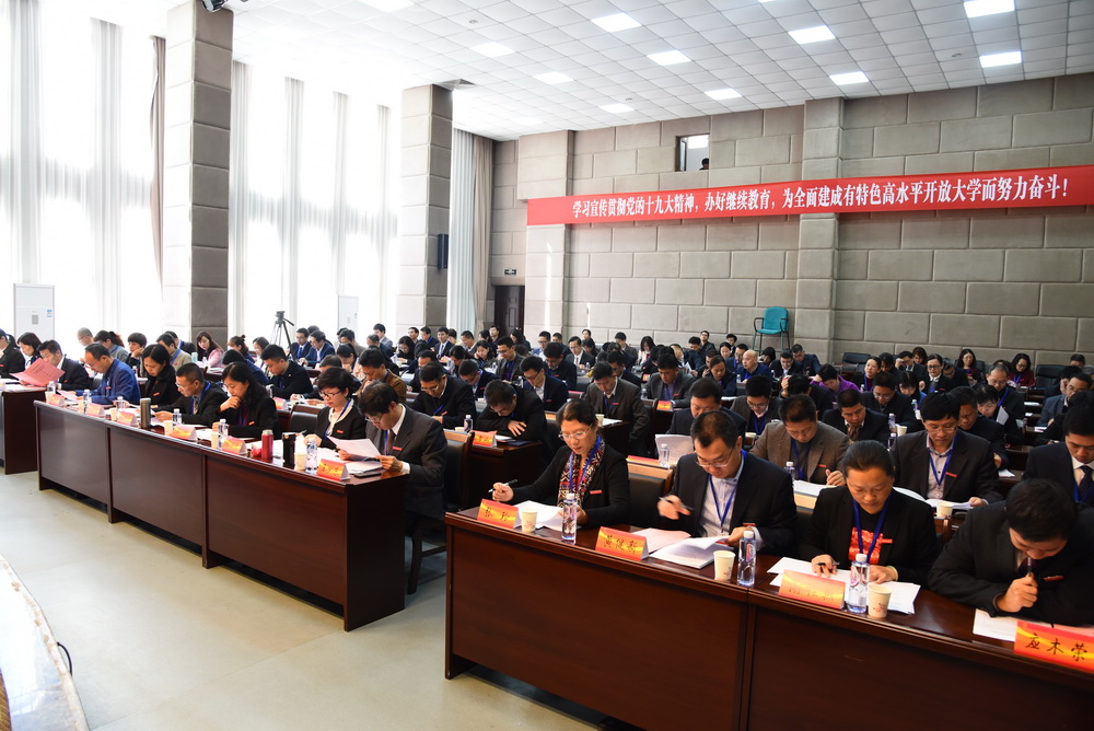 会上,校长吴国荣作题为《不忘初心牢记使命,努力办好人民满意的继续教育》的工作报告。他说,2017年广大师生员工凝心聚力、攻坚克难,转型发展有新作为,内涵建设有新加强,支持保障有新举措,党建工作有新气象,各项工作取得重要进展。