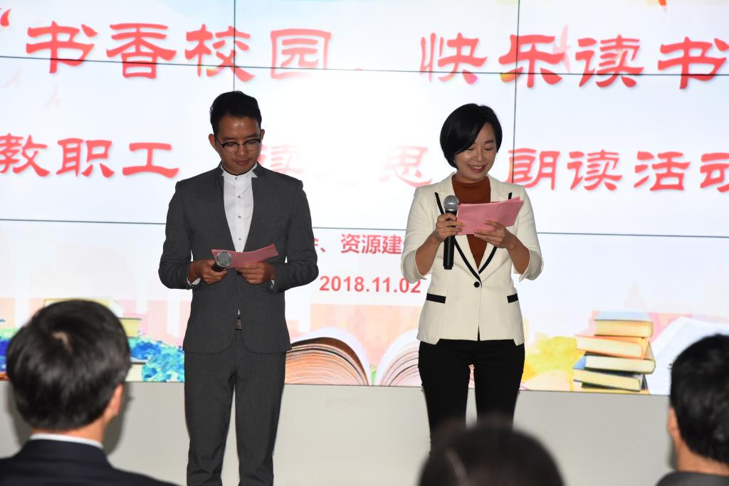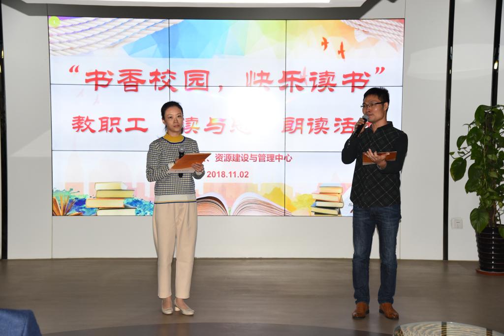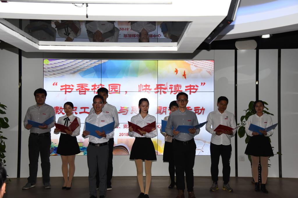 为深入学习贯彻习近平新时代中国特色社会主义思想,庆祝改革开放40周年暨邓小平同志批示创办电大40周年,11月2日下午,由工会、资源建设与管理中心主办的“书香校园,快乐读书”教职工“读与思”朗读活动在桂山校区数字学习体验中心举行。校领导陈兴炎、马成斌、王幼新同现场近70名观众一起参加了朗读活动。