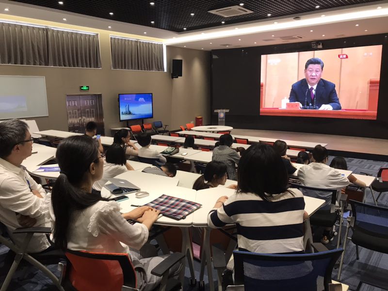收看大会直播的青年师生纷纷表示,以习近平同志为核心的党中央一直对青年和共青团工作高度重视,总书记关于青年工作的重要思想为青年成长成才指明了正确道路,要认真学习,深刻领会,在习近平总书记关于青年工作的重要思想指引下奋勇前行,以实际行动献礼百年五四,迎接新中国成立七十周年。