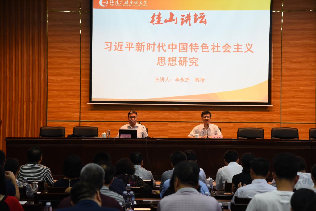 为深入学习习近平新时代中国特色社会主义思想,为即将在学校党委开展的“不忘初心、牢记使命”主题教育打下坚实的思想基础,按照中共中央印发《习近平新时代中国特色社会主义思想学习纲要》的通知要求,6月18日下午,学校在桂山校区博厚楼会议厅召开2019年第四次党委中心组理论学习(扩大)会议暨桂山讲坛讲座,邀请省委党校教授李永杰作《习近平新时代中国特色社会主义思想研究》辅导报告。校领导班子成员、处级以上干部,各党总支、党支部委员,副高以上职称教师参加学习。