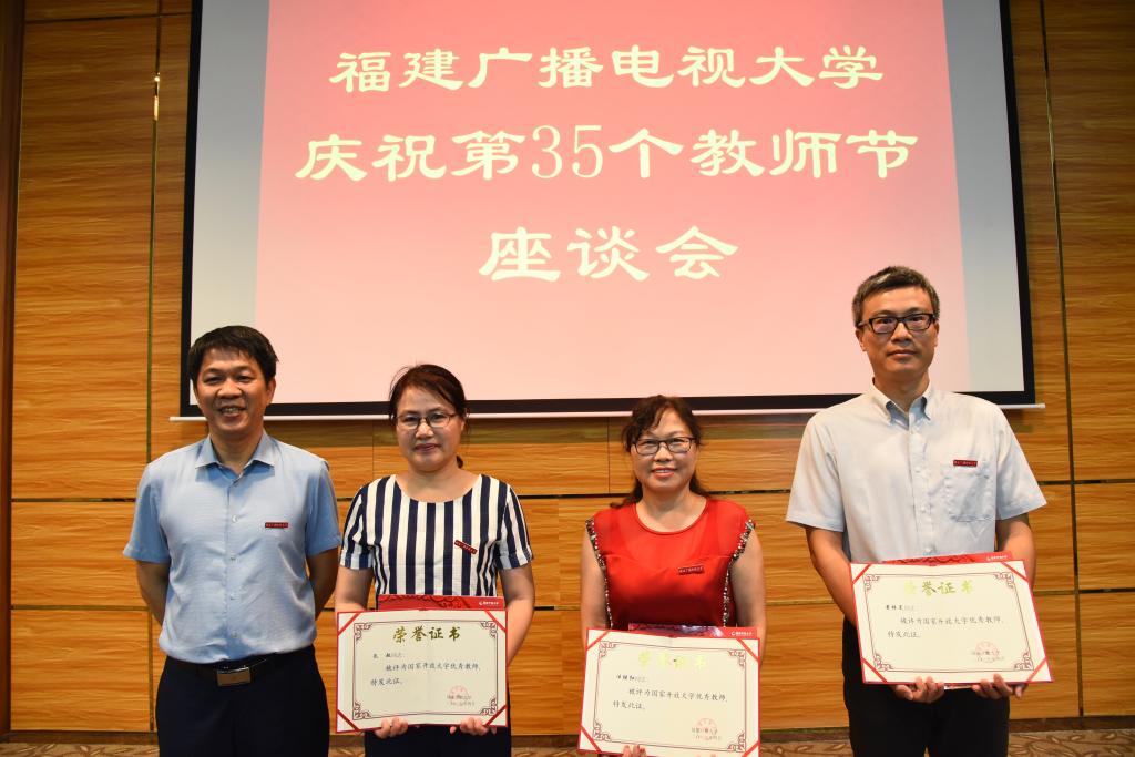 教师们进行了座谈和交流。“从教满30年教师”李燕芳,“国家开放大学优秀教师”汪继红,“全省电大系统先进集体”资产与后勤管理处处长林永周,“全省电大系统优秀教师”陈忠琼,“国家开放大学优秀青年教师培养对象”曾春妹,新教师王舒云等分享了各自的经历、体会和感想。