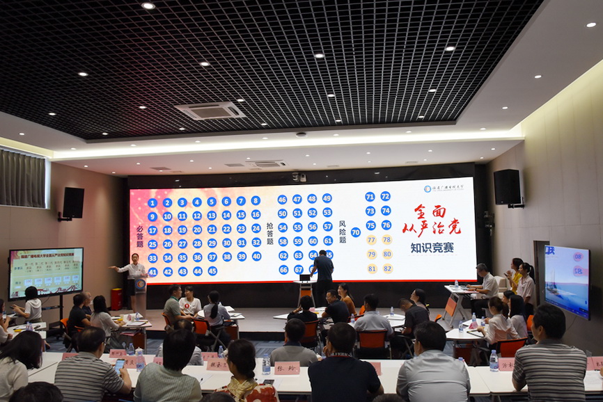 各代表队领队、各党支部书记、党员代表,以及校纪委、校团委有关人员80余人现场观看了竞赛,竞赛还通过直播系统向全校教职工直播。