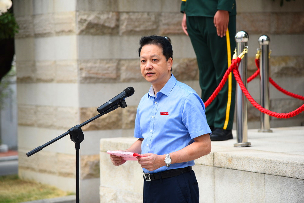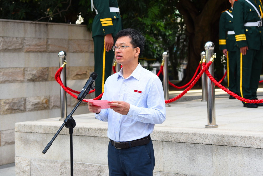 党委书记陈兴炎作活动讲话。他指出,在共和国70周年华诞之际,学校举行“同升国旗,同唱国歌”主题活动,以庄严神圣的方式表达对伟大祖国的崇敬和热爱。回首70年的艰辛探索、重温70年的光辉岁月、历数70年的辉煌成就,全体师生无比振奋、倍感自豪、充满信心。站在新的历史起点上,陈兴炎对全校党员干部和师生提出三点希望和要求: