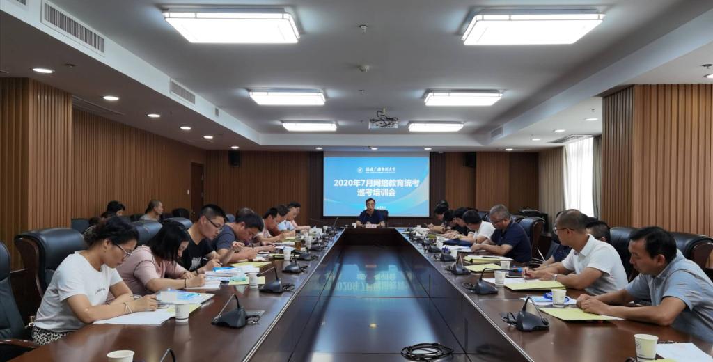 学校2020年7月网络教育统考巡考培训会于7月7日在桂山校区召开,副校长、应急领导小组组长沈光辉出席并讲话,远程教育学院院长周文明以及全省统考巡考人员参加会议。