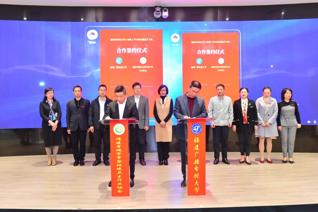 活动现场,福建广播电视大学理工学院院长雷乃旺代表学校与福建省城市市容环境卫生行业协会签订了福建省环境卫生行业职工学历和技能提升专班项目合作协议书,为学校与行业协同育人机制踏上新征程画上浓墨重彩的一笔。