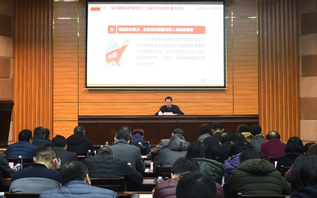 12月18日上午,党委书记陈兴炎在桂山校区博厚楼多功能会议厅为全校基层党组织书记及委员、科级以上干部作题为“把握新发展阶段 贯彻新发展理念 构建新发展格局 奋力谱写有特色高质量福建开放大学建设新篇章”党的十九届五中全会精神辅导报告。