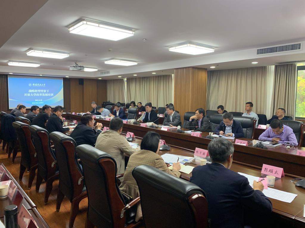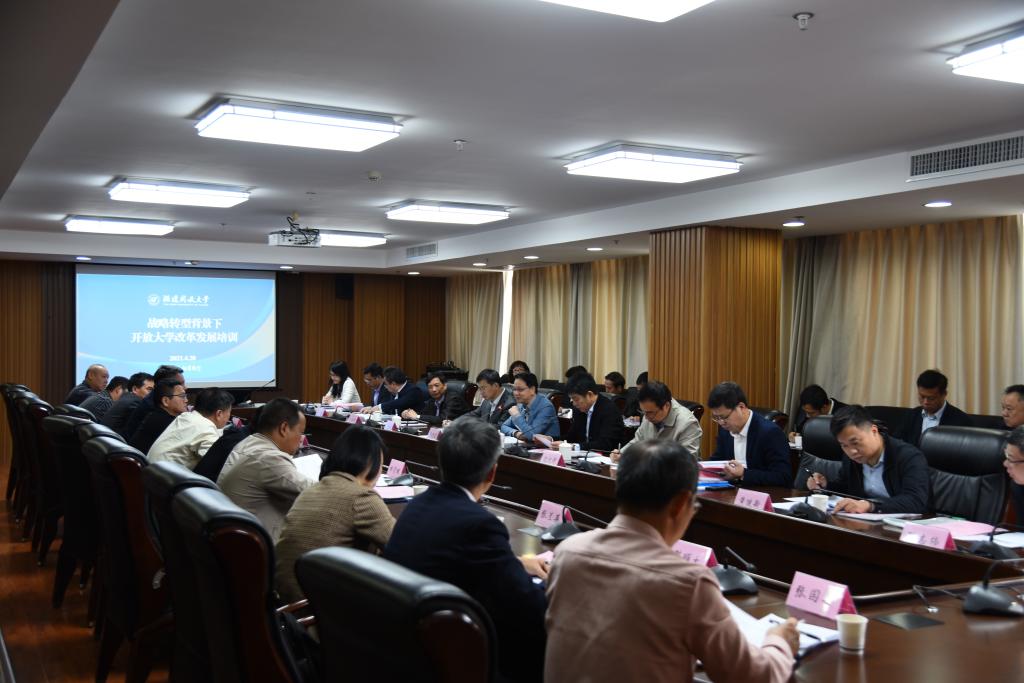 为推动系统转型发展,加强系统间沟通与交流,4月20日,学校举办战略转型背景下开放大学改革发展培训。党委副书记、校长吴国荣主持培训。