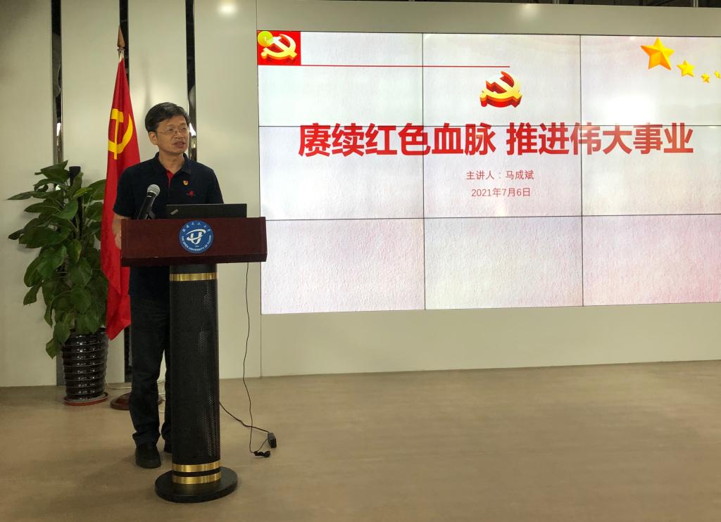 马成斌首先对学院在我校庆祝建党100周年文艺汇演所作出的努力给予肯定,并从两个文艺节目引入,讲述了八位革命先烈的英雄事迹,结合七一习近平总书记重要讲话精神,帮助学院党员干部、青年学生进一步认识领悟了百年建党精神和中国共产党人的精神谱系,同时就如何赓续红色血脉,提出了“心有榜样、发挥精神、汲取力量和奋发有为”的四点具体要求,为学院党总支、各支部下一步继续深入开展党史学习教育,认真学习贯彻习近平总书记七一重要讲话精神开展了一次生动、感人的党课辅导。