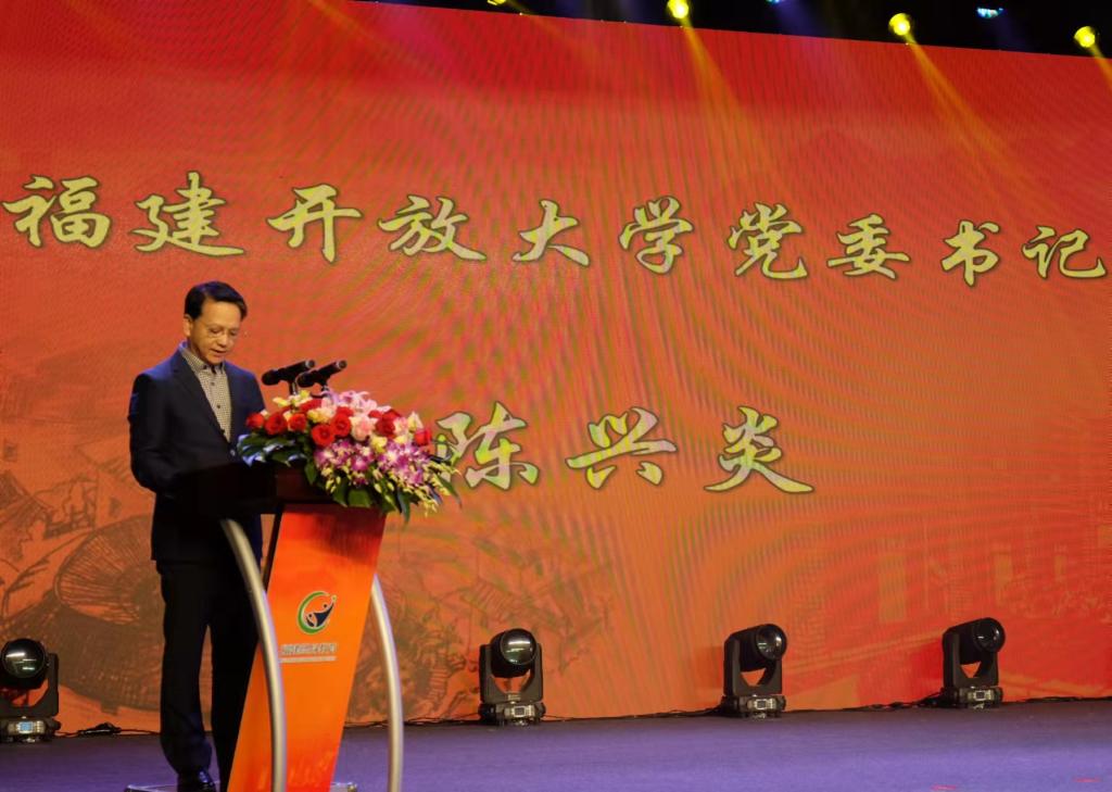 陈兴炎讲话,他表示福建开放大学这一年来紧紧围绕构建服务全民终身学习教育体系的目标定位,按照“服务示范,辐射带动”的工作方向,着力打造福建省终身教育的主体力量和支撑平台,大力推进社区教育、老年教育等终身学习支持服务工作。他提出要坚持以人为本、需求导向,努力为居民提供多样化终身学习服务;坚持社区为根、特色发展,全力以赴办好居民家门口的教育;坚持改革引领、创新驱动,构建具有福建特色的终身教育体系,谱写终身学习新篇章。