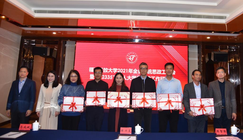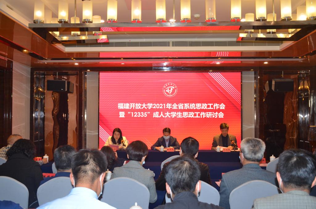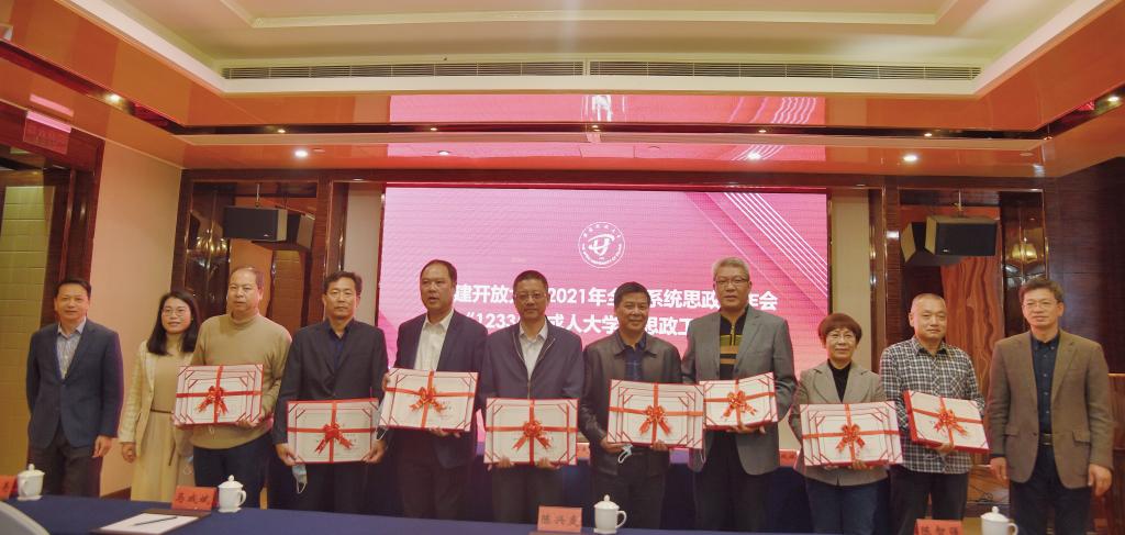 陈兴炎作了题为“全面加强和改进思想政治工作,努力开创新时代全省系统思政工作新局面”的讲话。他指出,全省办学系统要深入学习贯彻党的十九届六中全会精神,把思想行动统一到中央省委部署上来,切实增强做好新形势下思想政治工作的责任感和使命感。他总结回顾一年来,学校深入学习贯彻习近平新时代中国特色社会主义思想,认真落实《“三全育人”工作实施方案》要求,建立完善全省办学系统思想政治工作机制,推动“12335”成人大学生思政工作模式不断落地落细落实的工作成效:思想政治教育改革有新举措、思政课程与课程思政建设有新进展、校园文化有新气象、思政队伍建设有新加强、学生服务工作有新亮点。他强调,要以新发展理念为引领,围绕开放大学建设目标任务,切实将思政工作贯穿教育教学全过程,融入学生成长成才全过程,把福建开放大学新时代学生思想工作推向新阶段。