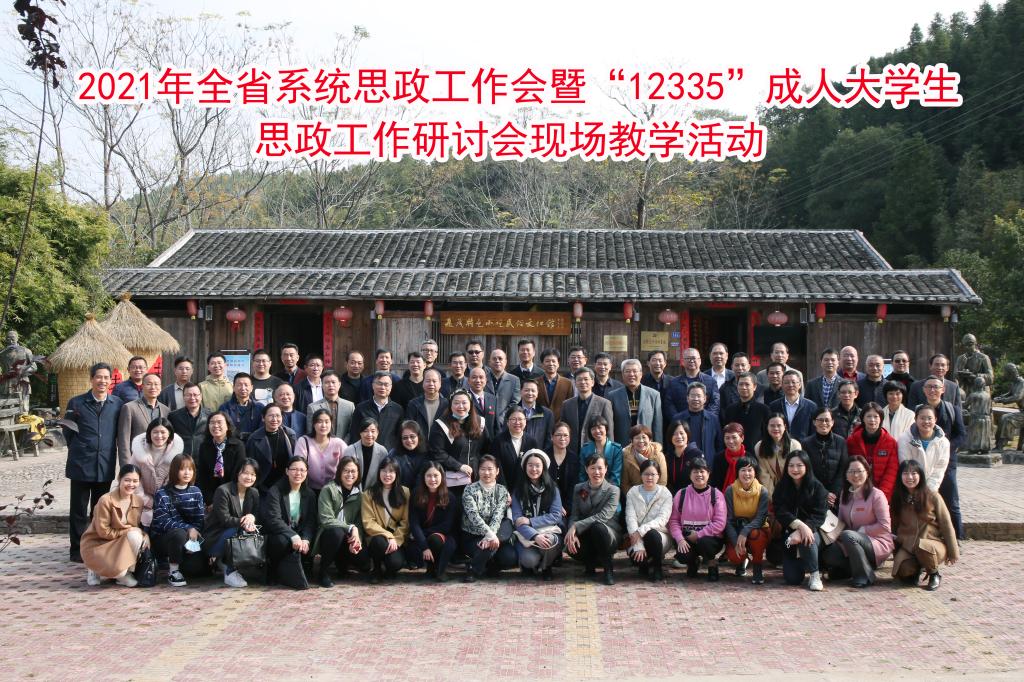 为深入学习贯彻习近平新时代中国特色社会主义思想和党的十九届六中全会精神,落实成人教育立德树人根本任务,总结两年来学校“12335”思政工作模式实施的阶段性成效,进一步推动新时代全省办学系统思想政治工作同向同行、协调开展,12月14日,学校2021年全省系统思政工作会暨“12335”成人大学生思政工作研讨会在三明市沙县区召开。党委书记陈兴炎,沙县区副区长邓秋萍出席会议。会议由党委副书记马成斌主持。