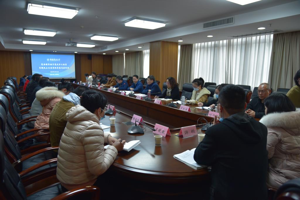 为开好学校党委领导班子党史学习教育专题民主生活会,1月11日下午,学校党委在桂山校区和左海校区同时召开会前征求意见座谈会,党委书记陈兴炎,党委副书记、校长吴国荣分别主持会议,校领导马成斌、李正光出席会议。有关部门负责人、处科级干部代表、教师代表,党代会、群团组织、民主党派和离退休干部代表40余人参加座谈。