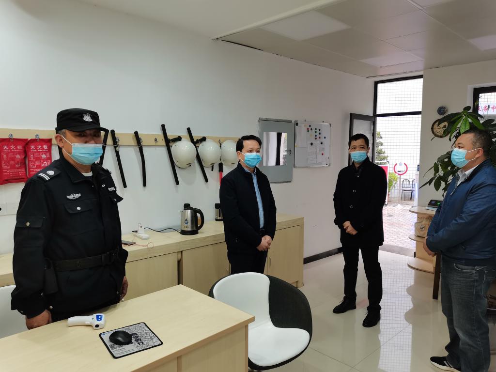 陈兴炎在校门口查看了保安员执行核查进校人员的身份与健康信息的情况,巡查校园并检查快件存取处、食堂、老干部活动中心、学生服务中心、保安员值班室等场所,了解有关部门落实疫情防控措施的情况,并给予现场指导。