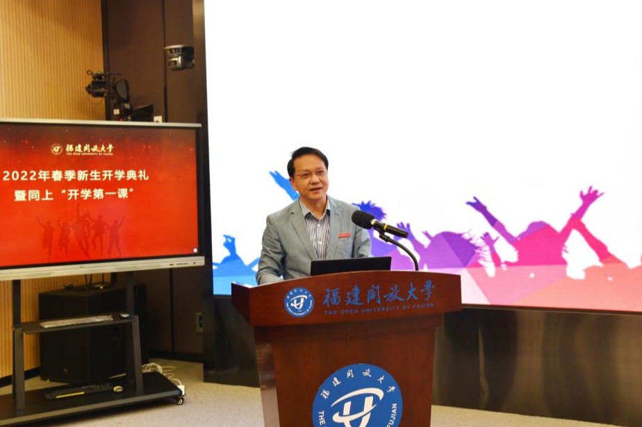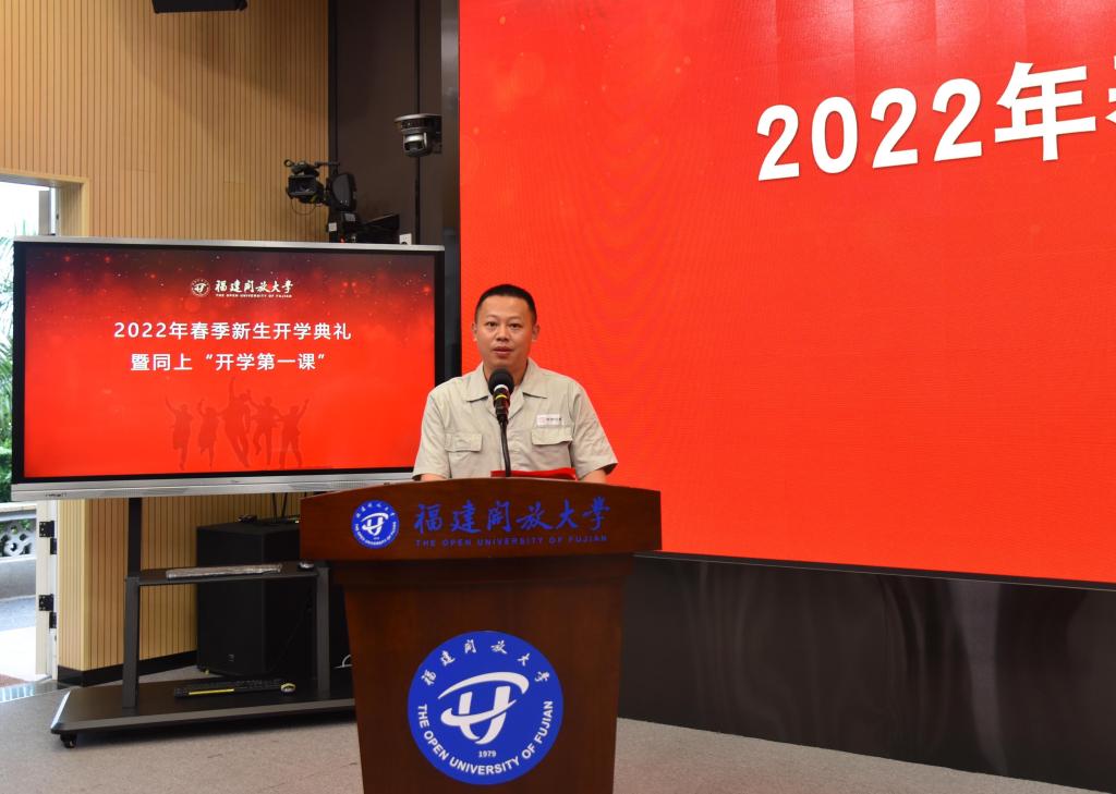 校长吴国荣在致辞中向新同学表示欢迎。他介绍了福建开放大学的历史,以“自强弘毅 励学敦行”校训精神与大家共勉,希望同学们坚持党的领导、坚持胸怀天下、坚持开拓创新、坚持敢于斗争、坚持自我革命,努力学习,以知识改变命运,用奋斗创造精彩,在新时代新征程上争取更大荣光。