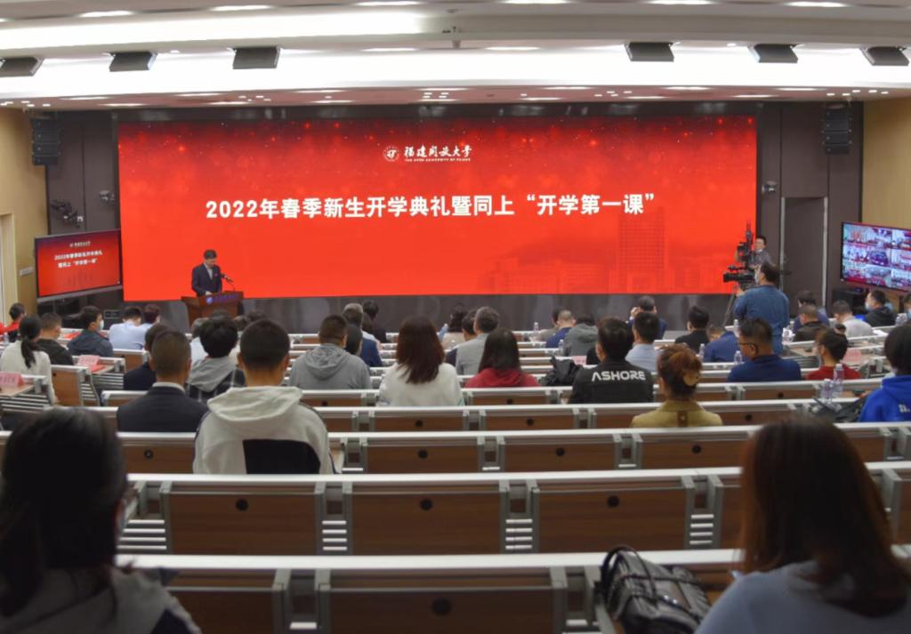 5月14日上午,福建开放大学举办2022年春季新生开学典礼,并同上“开学第一课”。校领导陈兴炎、吴国荣、马成斌、沈光辉、李正光与学校相关部门负责人和教师代表、直属学院新生代表在桂山校区主会场参加,全省各市县电(开)大、教学点的教师和2022年春季入学的新生通过分会场和收看线上直播方式参加活动。典礼由校党委副书记马成斌主持。