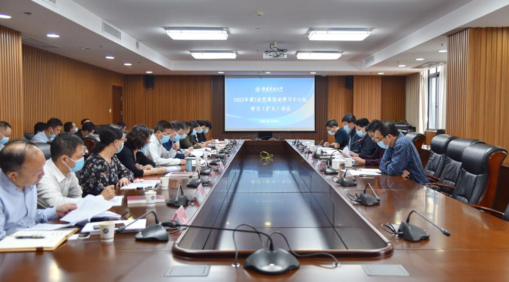 5月26日上午,校党委书记陈兴炎主持召开2022年第五次党委理论学习中心组学习(扩大)会议,以“扎根中国大地办大学——学习习近平总书记系列重要讲话精神”为主题,学习习近平总书记在中国人民大学考察时和在庆祝中国共产主义青年团成立100周年大会上的重要讲话精神,中共中央政治局相关会议精神以及《习近平书信选集(第一卷)》。校领导吴国荣、马成斌、沈光辉、李正光及全校正处级干部参加会议。
