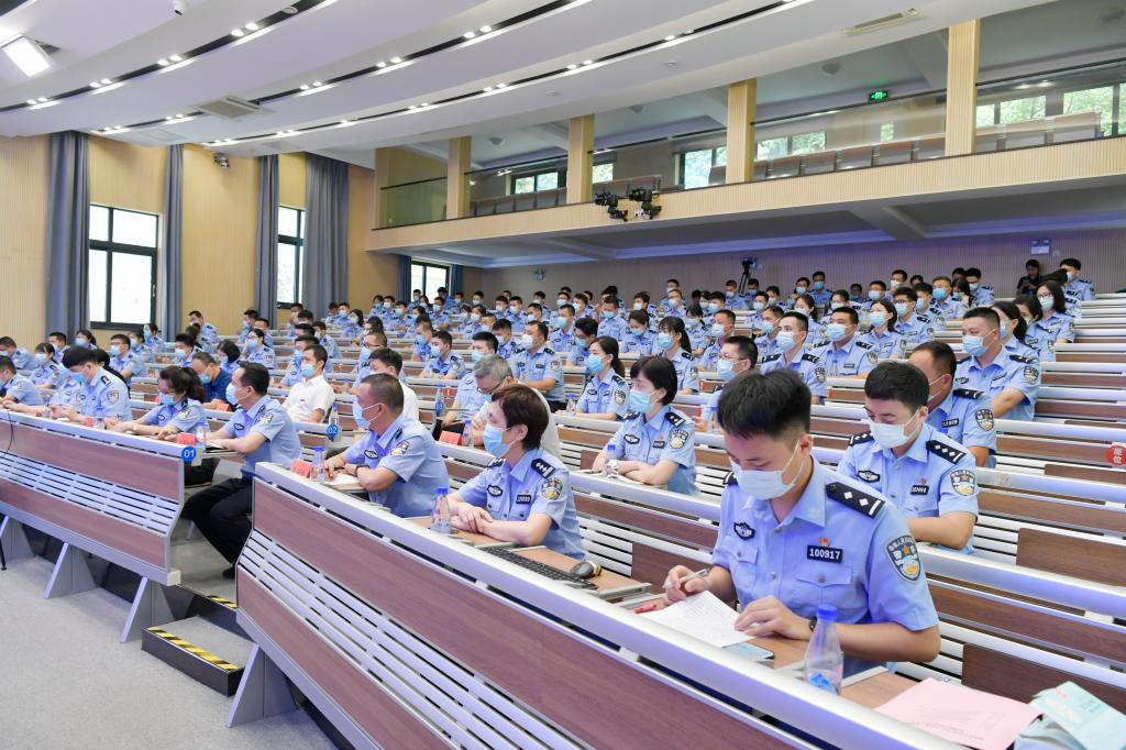 7月12日上午,在全省上下深入学习贯彻党的十九届六中全会精神、聚力“提高效率、提升效益、提增效能”行动之际,福建开放大学、福州市公安局辅警学院2022年度第一期“育警铸剑”主题警务辅助人员教育培训班在福建开放大学桂山校区智慧教室正式开班。福建开放大学党委委员、副校长李正光,福州市公安局党委委员、政治部主任郑南,福建省公安厅人事处副处长刘哲立等领导出席开班仪式。首期培训共有100名辅警学员代表参加。