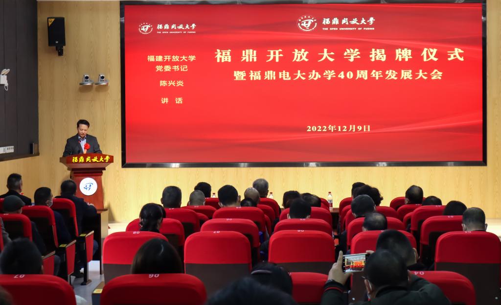 12月9日上午,福鼎开放大学揭牌仪式暨福鼎电大办学40周年发展大会在福鼎开放大学举行。校党委书记陈兴炎出席大会并致辞。
