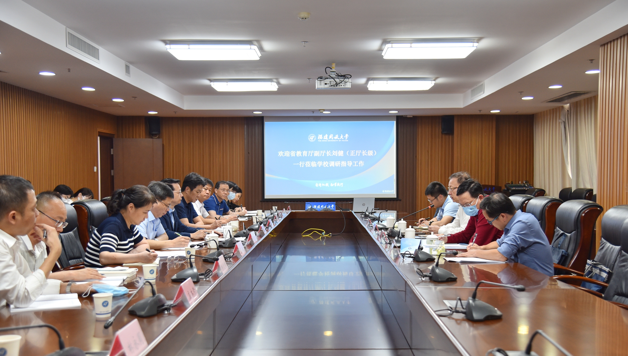 5月23日下午,福建省委教育工委委员、省教育厅党组成员、副厅长(正厅长级)刘健,带领省教育厅高等教育处处长、科学技术与信息化处处长黄文华,省教育厅职业教育与成人教育处四级调研员陈晋淞、省教育评估研究中心副主任王长旺一行莅临学校调研指导。校党委书记陈兴炎、校长吴国荣、副校长李正光,成人本科学士学位申办工作专班成员参加了调研座谈。座谈会由陈兴炎主持。