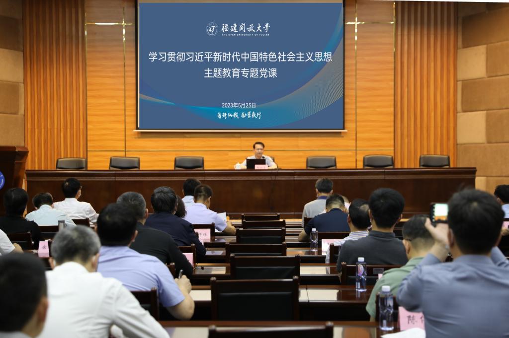 按照中央和省委学习贯彻习近平新时代中国特色社会主义思想主题教育部署要求,5月25日下午,党委书记陈兴炎在桂山校区博厚楼二楼会议厅带头讲学习贯彻习近平新时代中国特色社会主义思想主题教育专题党课。全体校领导、处级干部、各基层党组织书记、主题教育领导小组办公室全体成员参会。省委第13巡回指导组组长李宝银、成员陈若彦莅会指导。