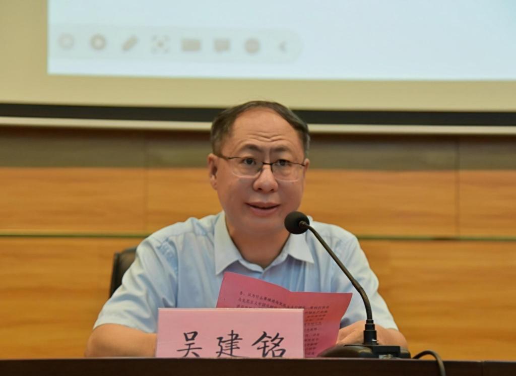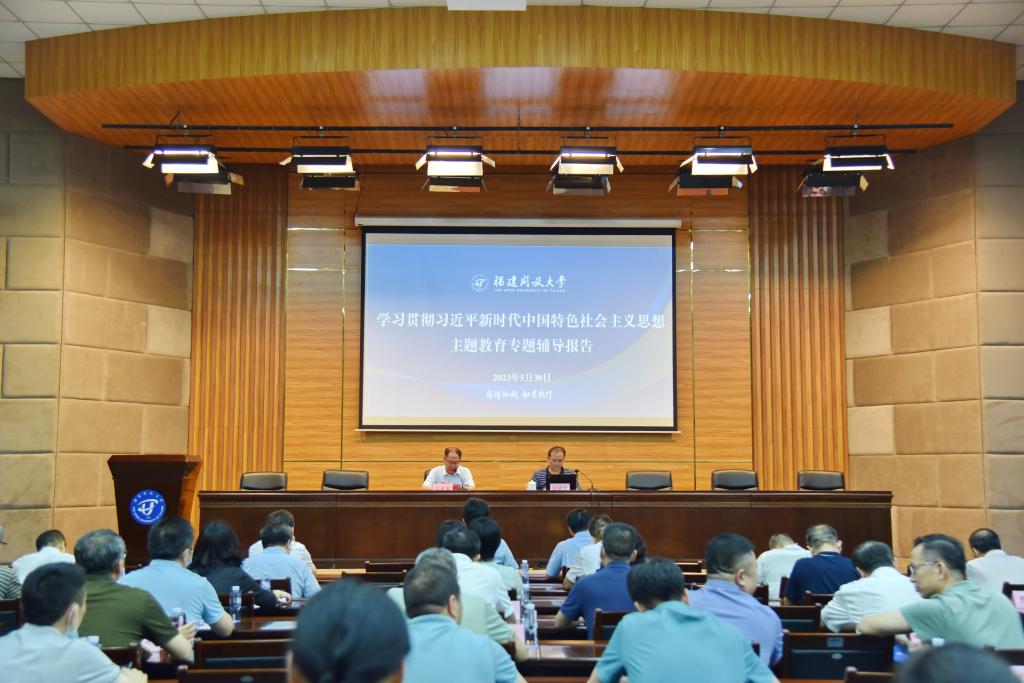 5月30日下午,学校学习贯彻习近平新时代中国特色社会主义思想主题教育读书班第四场专题辅导报告会在博厚楼会议室举行。党委委员、副校长吴建铭主持报告会,中共福建省委党校哲学部教授、主任,福建师范大学兼职硕士生导师何建津作《开辟马克思主义中国化时代化新境界》辅导报告。全体校领导、处级干部、各基层党组织书记、主题教育领导小组办公室全体成员参加。