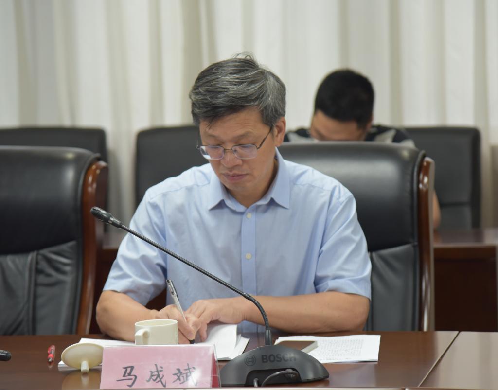 马成斌代表学校主题教育领导小组办公室通报了学校主题教育开展以来取得的进展,分析了工作中存在的不足,并对下一步工作作出部署。他指出,学校主题教育启动以来,校党委以高标准高质量抓好主题教育各项工作,力求在以学铸魂、以学增智、以学正风、以学促干方面取得成效:一是持续深化理论武装,做到四个“突出”,确保学习成效;二是持续抓好调查研究,把准调研方向,注重调研实效;三是持续推动整改整治,找实具体问题,抓实专项整治;四是持续做好新闻宣传,打造校内宣传阵地,推进外媒宣传报道。他强调,要进一步加大整改力度,切实取得成效,一是要高质量完成学习任务;二是要按时完成专题党课;三是要做好典型案例上报工作;四是要做好部门网页更新,突出主题教育重点;五是要按时提交调研报告与成果;六是要统筹落实好读书班的学习进度与质量;七是要利用好校史专题馆特色资源,在端午节前组织教职工参观学习;八是要牢牢把握中央及省委工作要求,克服形式主义,减轻基层负担,杜绝层层加码。