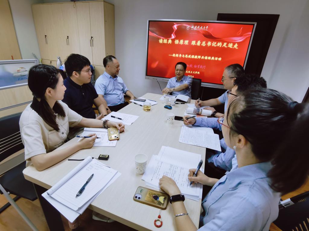 6月29日上午,校党委书记陈兴炎到马克思主义学院调研指导工作,与学院教师共读经典。