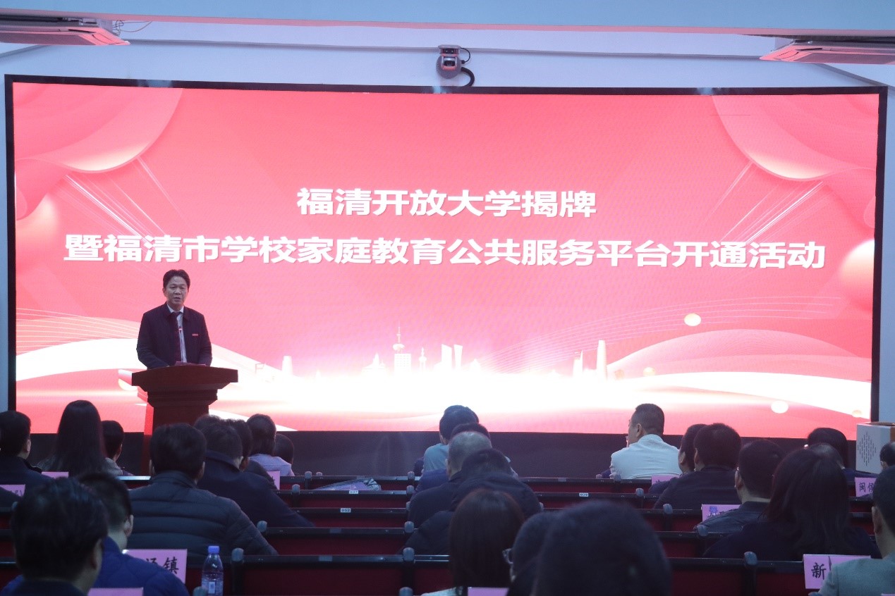 12月4日上午,福清开放大学揭牌暨福清市学校家庭教育公共服务平台开通活动在福清开放大学举行。校党委副书记、校长吴国荣出席活动并致辞。