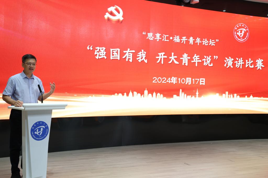 为深入学习贯彻党的二十届三中全会精神和全国教育大会精神,引领学校年轻干部以昂扬斗志、蓬勃向上的精神风貌干事创业、建功立业,10月17日下午,学校在左海校区智慧教室举办第4期“思享汇·福开青年论坛”暨“强国有我 开大青年说”年轻干部演讲比赛。校党委副书记马成斌出席并讲话。
