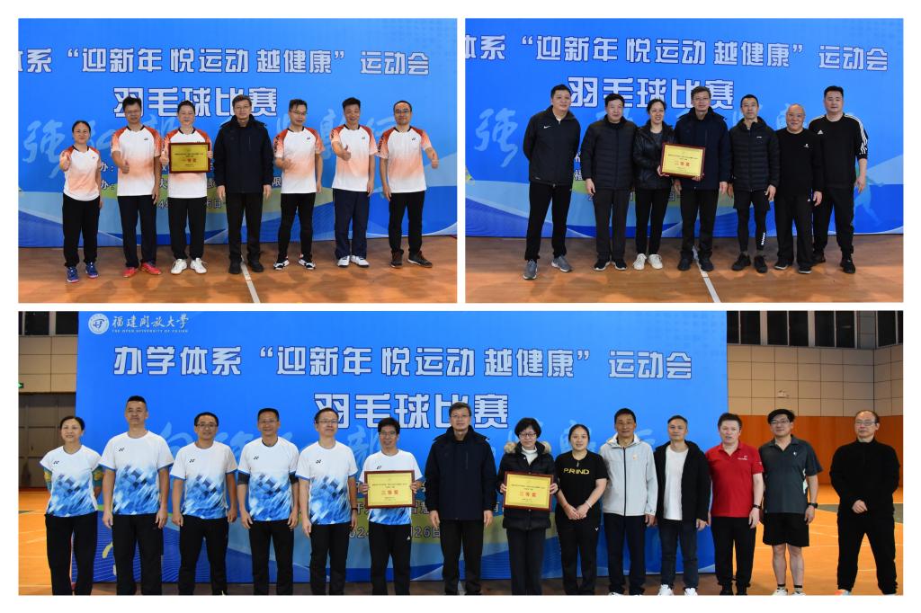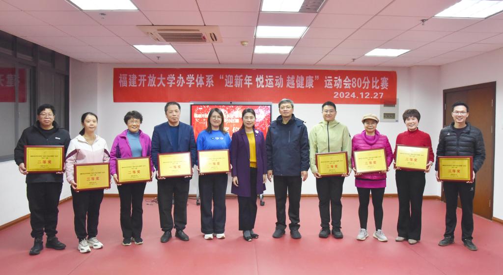 经过两天激烈的比拼,由科研处等部门组成的“研行天下队”荣获广播体操表演赛一等奖,省校一队荣获羽毛球比赛一等奖,省校一队、宁德一队荣获80分比赛一等奖。龙岩、三明等体系教职工组成的联合队斩获“齐头并进”“鼓舞人心”两项冠军,由马克思主义学院等部门组成的“一马当先队”、职业学院电气工程系等部门组成的“治学先锋队”在“齐头并进”“绳彩飞扬”比赛中勇创佳绩,与体系联合队共同摘得一等奖奖牌。校领导分别为获奖代表颁奖。