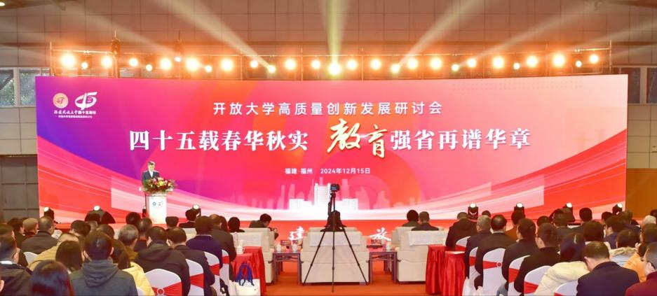 学校迎来建校45周年之际,省委书记周祖翼对学校办学发展45周年作出批示。12月15日,学校成功举办国家老年大学福建分部揭牌暨开放大学高质量创新发展研讨会。福建省政协副主席余军,省政协原副主席、福建老年大学校长杨根生,省政协原副主席、学校原党委书记李红,国家开放大学党委书记、校长王启明,省教育厅党组书记、厅长叶燊等出席大会。王启明表示,国家开放大学(国家老年大学)将大力支持福建分部建设,推动形成课程专业共建、教师队伍共培、科学研究共享、成果展示共办、平台服务互联、特色示范共推的办学新格局,为建设全民终身学习的学习型社会、学习型大国作出应有贡献。叶燊表示,要强化系统观念,着力构建终身教育共同体。以福建开放大学体系为基础,省市县三级一体推进完善老年教育办学服务体系。要抢抓数字化机遇,建好用好“福建终身教育公共服务平台”,加快完善“学分银行”制度。要办好国家老年大学福建分部,着力扩大优质老年教育资源供给,让老年教育成果更多更公平惠及老年人。全体与会人员共同重温了习近平总书记殷切嘱托,回望福建开放大学筚路蓝缕的奋斗历程,凝练办学经验和优良传统,展望未来发展前景。研讨会还邀请全国办学体系和兄弟高校的专家型领导作多场主题报告。