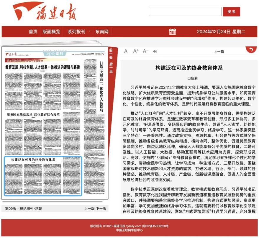 《福建日报》理论周刊·求是版刊发党委书记庄莉署名文章
