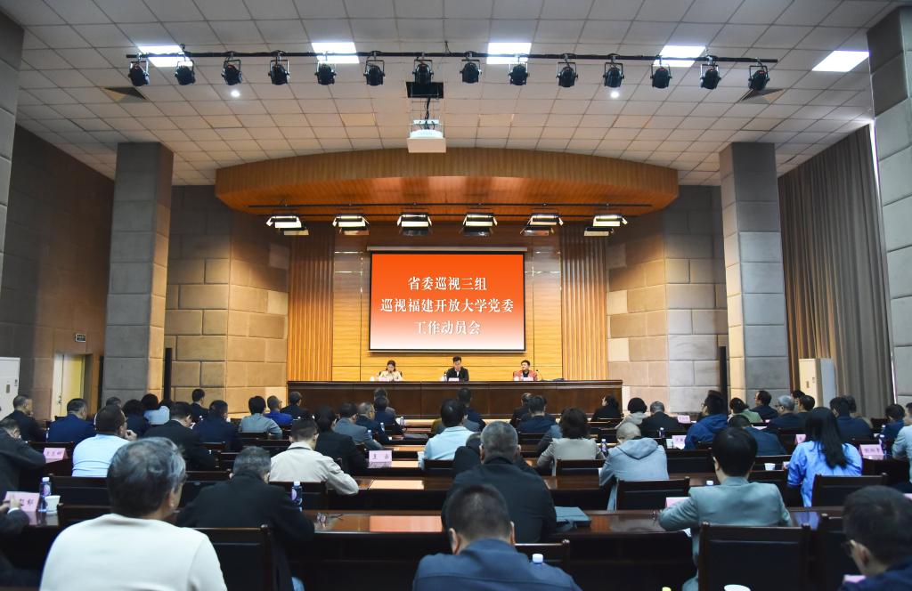 根据省委部署,3月25日,省委巡视三组巡视福建开放大学党委工作动员会召开。会上,省委巡视三组副组长章择善传达了省委关于巡视工作的指示要求、全省巡视巡察工作会议暨第六轮巡视工作动员部署会精神;省委巡视三组组长赖土发作了进驻动员讲话,对做好巡视工作提出要求;校党委书记庄莉主持会议并作表态讲话。