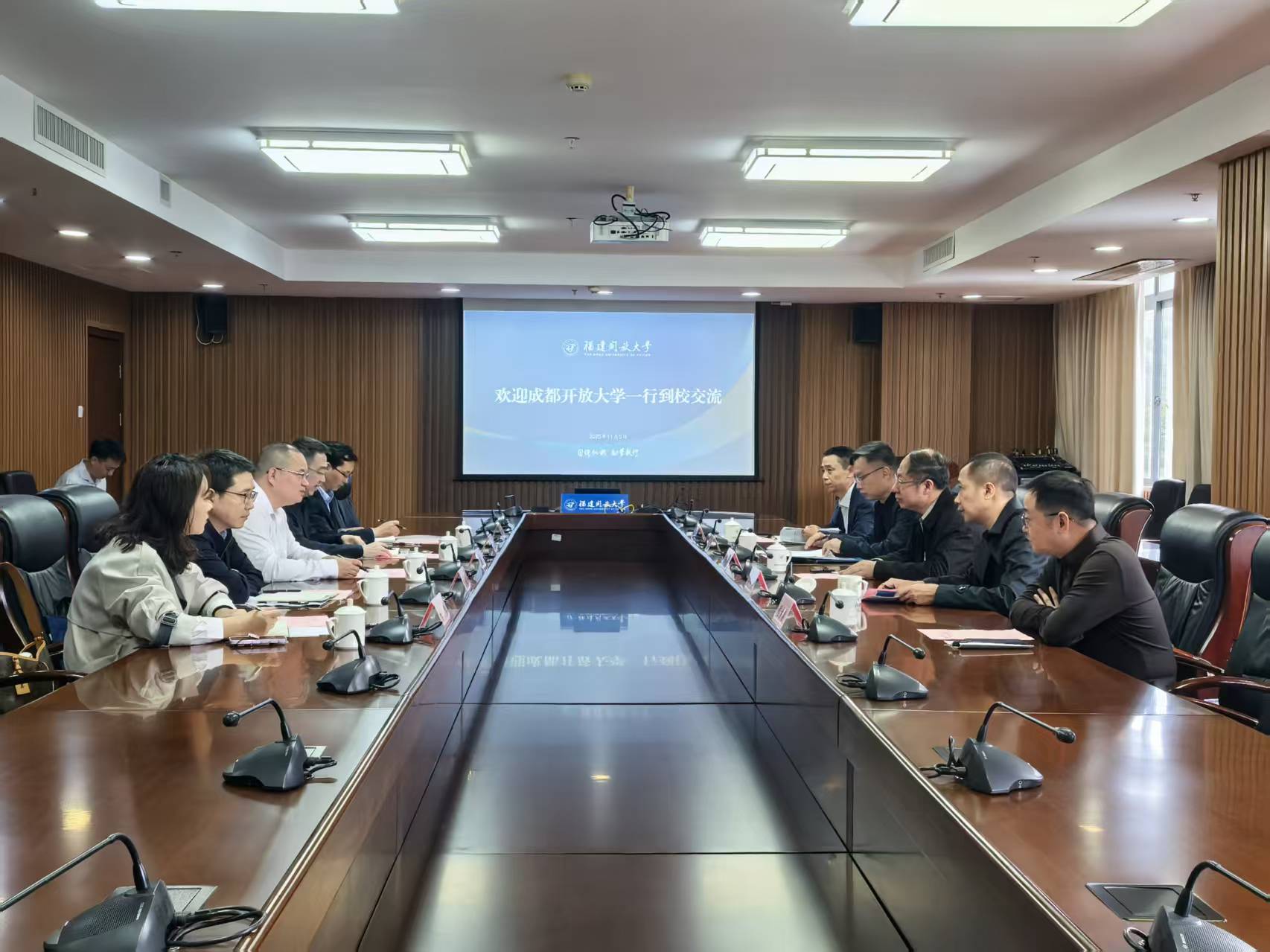 副校长吴建铭主持召开座谈会。会上,他介绍了学校在非学历教育、数字化平台建设、机构设置与绩效考核等方面的经验做法。他表示,学校深入贯彻落实教育强国、教育强省建设规划纲要的部署要求,坚持以服务区域经济发展需求为导向,以教育数字化为重要突破口,持续深化数智赋能,积极探索社会培训市场化运作机制与服务新模式,着力构建泛在可及的终身教育体系。文亚军对福建开放大学的支持表示感谢,他介绍了成都开放大学事业发展情况,并围绕社会化培训品牌建设、招生激励机制等方面开展深入交流。双方一致表示,将进一步加强交流合作,做到优势互补、各展所长,不断推动合作向更广领域、更深层次、更高水平迈进,共同为区域经济社会发展贡献更大力量。