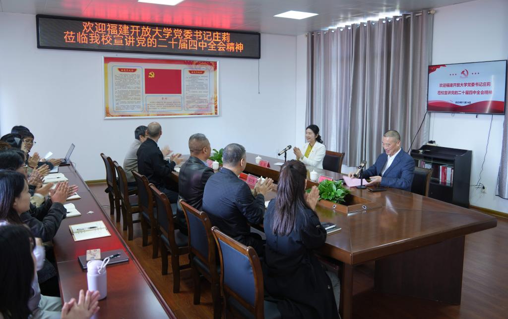 近日,福建开放大学党委书记庄莉在建阳开放大学宣讲党的二十届四中全会精神并开展社区教育调研。