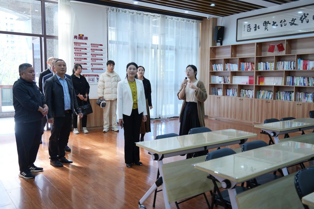会后,庄莉前往景龙社区开展社区教育实地调研,详细了解场地管理、课程设置、师资配备及群众参与度等工作,与基层工作者及居民代表深入交流,听取社区教育工作推进情况汇报,并围绕优化社区教育资源配置、提升服务质效等方面提出工作建议。