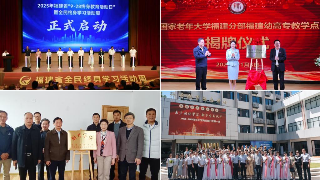 入选教育强国建设三年行动计划“数字赋能学习型社会建设”试点单位,“数字赋能老年教育”入选试点项目。承办2025年福建省“9·28终身教育活动日”暨全民终身学习活动周,“福开学堂”“福开夜校”等品牌持续引领终身学习新风尚,国家老年大学福建分部福建幼高专教学点揭牌成立,社区教育、老年教育线上线下年服务约290万人次。建设完善福建终身教育公共服务平台,推进老年教育“同播云课堂”建设,《数字赋能,智慧助老——福建“泛在多元”老年教育公共服务体系》等入选2025年全国新时代“特别受百姓喜爱的终身学习品牌项目”。